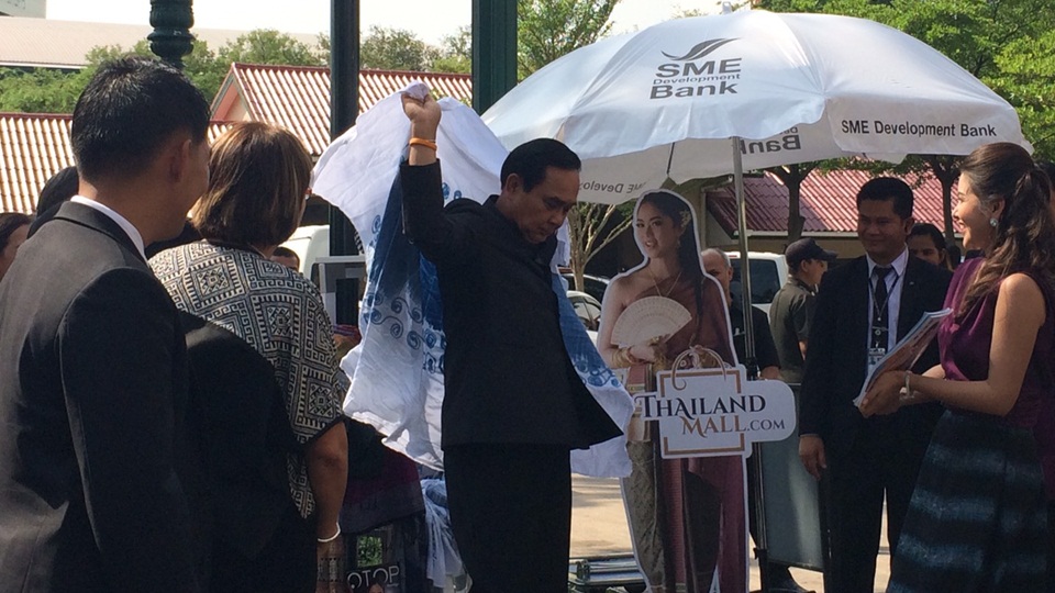 นายกรัฐมนตรี ร่วมชมสินค้า พร้อมนำผ้าบาติกเขียนมือ มาทำท่าสะบัดแบบเดียวกับหน้าปกหนังสือ แคตตาล๊อค โอทอป ฉบับเดือนเมษายน – เดือนมิถุนายน พร้อมกล่าวว่า ยินดีทำให้ได้ทุกอย่าง ถ้าช่วยให้มูลค่าสินค้าเพิ่มขึ้น แต่ยอมรับว่ามีความกังวล กับสินค้าโอทอปหลายชนิดที่มีปัญหาไม่สามารถจัดส่งสินค้าได้ตามคำสั่งซื้อ เนื่องจาก ส่วนใหญ่ เป็นสินค้าทำมือ หรือ แฮนด์เมด ที่ต้องใช้เวลานาน จึงขอให้หน่วยงานที่เกี่ยวข้องหาแนวทางสนับสนุนช่วยเหลือกลุ่มผู้ผลิต ส่วนสินค้าที่ละเมิดลิขสิทธิ รัฐบาลจะดำเนินการอย่างจริงจัง เพื่อช่วยเหลือผู้ประกอบการไม่ให้ถูกเอารัดเอาเปรียบ.-สำนักข่าวไทย
