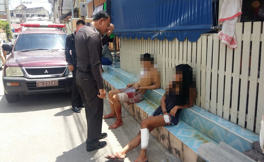 เมื่อเวลา 11.30 น. (11 พ.ค.) ร.ต.อ.ศักดิ์ชาย จันลา รอง สวป.สภ.เมืองพัทยา จ.ชลบุรี รับแจ้งมีผู้บาดเจ็บจากเหตุทะเลาะวิวาทที่ห้องเช่ากลางซอยประหยัด พัทยาใต้ ม.10 ต.หนองปรือ อ.บางละมุง จึงประสานหน่วยกู้ภัยเข้าช่วยเหลือพบว่าห้องเกิดเหตุอยู่บนชั้น 2 ประตูห้องปิดล็อคและมีเสียงทะเลาะกันภายในอย่างรุนแรง เจ้าหน้าที่พยายามพูดเกลี้ยกล่อมให้เปิดประตูเพื่อระงับเหตุ กระทั่งผ่านไปกว่าชั่วโมง คนในห้องได้เปิดประตูให้ตำรวจไปเข้าตรวจสอบพบว่าข้าวของกระจัดกระจายและมีผู้บาดเจ็บ 2 ราย จากของมีคมจึงนำส่งโรงพยาบาลบางละมุง เป็นชาย อายุ 47 ปี และภรรยา อายุ 19 ปี ส่วนสาเหตุคาดว่าเกิดจากความหึงหวง โดยก่อนเกิดเหตุภรรยาสาวนอนเล่นโทรศัพท์แชทผ่านไลน์ด้วยอาการยิ้มไปแชทไป ทำให้สามีเกิดความระแวงคิดว่าคุยกับชายหนุ่ม จึงไปขอดูโทรศัพท์ แต่ภรรยาแสดงท่าทางไม่พอใจจนเกิดปากเสียงกัน ทำให้ฝ่ายสามีหยิบกระปุกออมสินมาทุบศีรษะภรรยา ขณะที่ภรรยาใช้มีดพกสั้นไล่ฟันสามีจนบาดเจ็บ