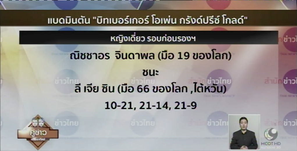 ผลการแข่งขันแบดมินตัน “บิตเบอร์เกอร์ โอเพ่น กรังด์ปรีซ์ โกลด์” ชิงเงินรางวัลรวม 120,000 ดอลลาร์สหรัฐ หรือประมาณ 4,200,000 บาท ที่เมืองซาร์บรูคเค่น ประเทศเยอรมนี เมื่อวันที่ 4 พ.ย. รอบก่อนรองฯ หญิงเดี่ยว “แน็ต” ณิชชาอร จินดาพล มือ 19 ของโลก ชนะ ลี เจีย ซิน มือ 66 ของโลก จากไต้หวัน 10-21, 21-14, 21-9 ผ่านเข้ารอบรองฯ ไปพบ “พีช” พรทิพย์ บูรณะประเสริฐสุข มือ 14 ของโลก ที่ชนะเบตริกซ์ คอร์ราเลส มือ 23 ของโลก จากสเปน 21-12, 21-7