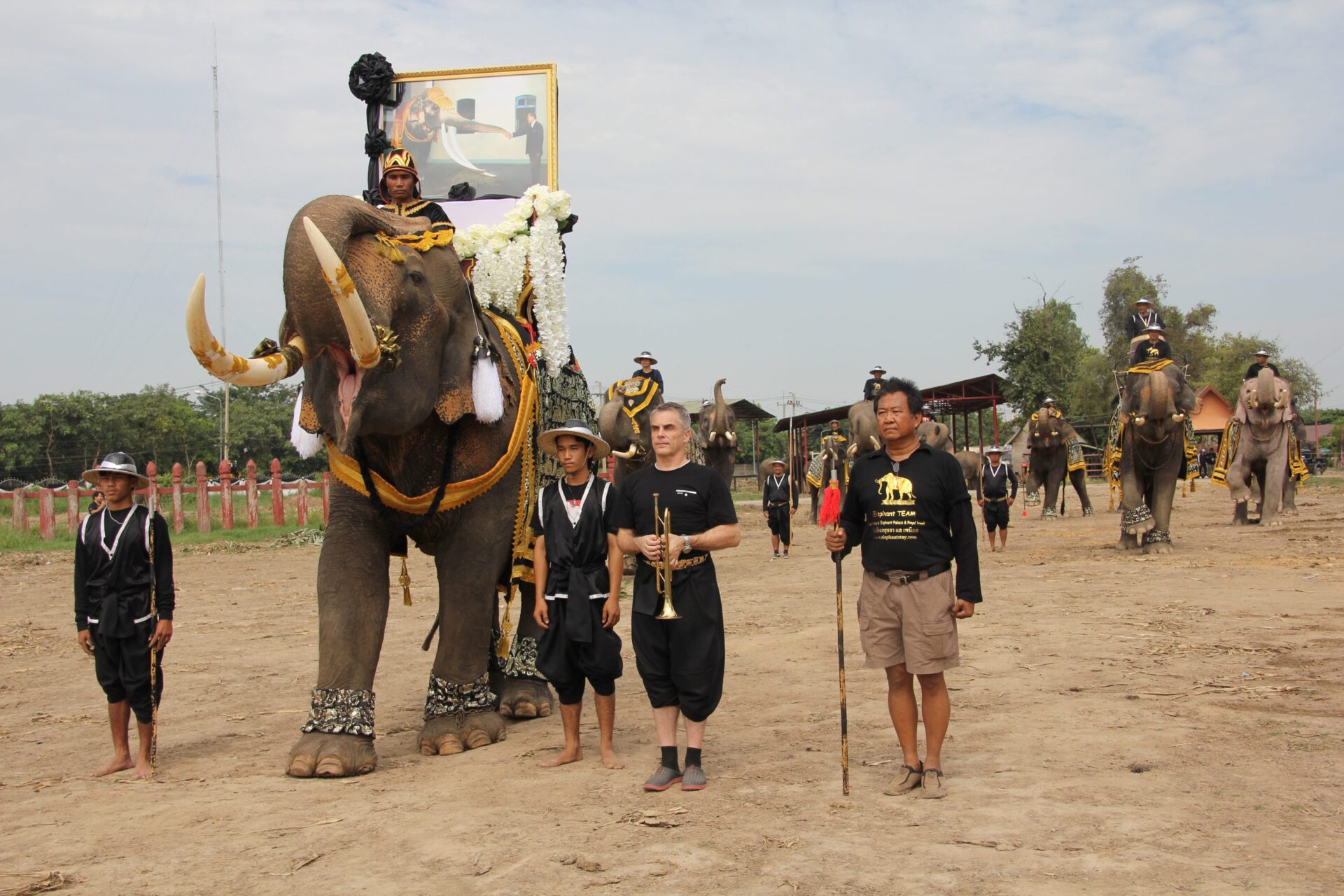 การซ้อมวันนี้พิเศษกว่าทุกวันที่ผ่านมา โดยช้างทุกเชือกจะแต่งคชอาภรณ์สีดำลักษณะช้างศึก ร่วมกับควาญช้างทั้งชาวไทยและชาวต่างชาติที่แต่งกายเป็นทหารโบราณชุดสีดำ ซึ่งมี “พลายวัง” นำหน้าขบวน เพื่ออัญเชิญพระบรมฉายาลักษณ์พระบาทสมเด็จพระปรมินทรมหาภูมิพลอดุลยเดชที่ทรงฉายพระรูปร่วมกับพระเศวตอดุลยเดชพาหนฯ ช้างเผือกประจำรัชกาลที่ 9