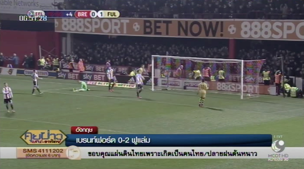 ฟุตบอลเดอะแชมเปียนชิพ อังกฤษ ที่สนามกริฟฟิน พาร์ค เบรนท์ฟอร์ด เจ้าถิ่น เสื้อสีขาวแดง พบกับ ฟูแล่ม เกมครึ่งแรกนาทีที่ 36 บอลจากกราบขวา โซเน อาลูโก ได้โอกาสยิงจังหวะแรกติดเซฟดาเนียล เบนท์ลีย์ นายทวารเบรนท์ฟอร์ด ก่อนที่ อาลูโก จะตามซ้ำเข้าไป ให้ฟูแล่มนำก่อนในครึ่งแรก 1-0
