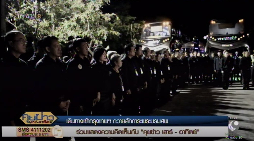 ภูมิภาค 5 พ.ย. – ชาวบ้านหลายจังหวัด ทั้ง พิจิตร พัทลุง และภูเก็ต ขึ้นรถบัสเข้ากรุงเทพฯ มุ่งหน้าสู่พระบรมมหาราชวัง เพื่อกราบถวายสักการะพระบรมศพ ด้วยสำนึกในพระมหากรุณาธิคุณ