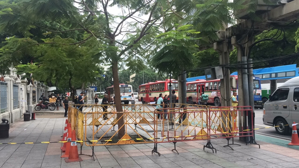 กทม.16 พ.ค.- เจ้าหน้าที่เพิ่มกำลังคุมเข้มหน้าโรงละครแห่งชาติ ยังกั้นโดยรอบที่เกิดเหตุเสียงดังคล้ายระเบิด ตำรวจเรียกสอบเพิ่มผู้อยู่ในเหตุการณ์