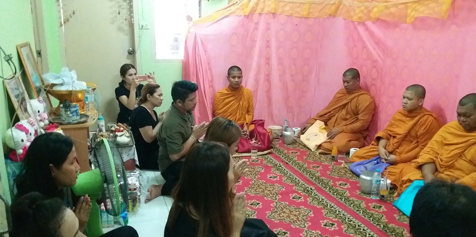 เมื่อเวลา 10.30 น. (16 พ.ค.) นายรัชชานนท์ บุญงาม อายุ 40 ปี และ นางสาวสุมามาศ จันทร์อิน อายุ 34 ปี นิมนต์พระสงฆ์ 5 รูป ทำบุญภายในห้องพักอาศัยย่าน ต.คลองมะเดื่อ อ.กระทุ่มแบน จ.สมุทรสาคร เพื่ออุทิศส่วนกุศลให้กับน้องน้ำหนึ่ง ลูกสาววัย 4 ขวบ ซึ่งเสียชีวิตครบ 7 วัน จากเหตุพลัดตกลงไปในท่อบำบัดน้ำเสียภายในโครงการเคหะเอื้ออาทรวัดหงอนไก่ หมู่ 2 ต.คลองมะเดื่อ เมื่อค่ำวันที่ 10 พ.ค.ที่ผ่านมา และได้ฌาปนกิจศพไปเรียบร้อยแล้ว