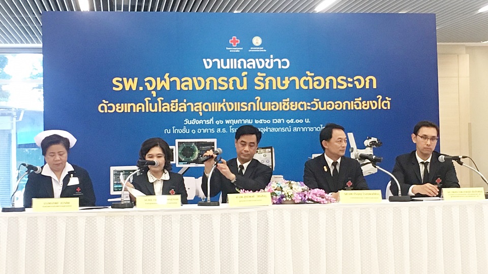 นพ.สุทธิพงศ์ วัชรสินธุ ผู้อำนวยการ โรงพยาบาล (รพ.) จุฬาลงกรณ์ พร้อมด้วย นพ.ปริญญ์ โรจนพงศ์พันธุ์ หัวหน้าฝ่ายจักษุวิทยา รพ.จุฬาลงกรณ์ แถลงข่าวการรักษาตาต้อกระจกด้วยเทคโนโลยีล่าสุด แห่งแรกในเอเซียตะวันออกเฉียงใต้ ว่า ขณะนี้ทาง รพ. ได้นำเครื่องตรวจวัดค่าสายตาระหว่างการผ่าตัด แบบ Realtime ที่มีความทันสมัย และแม่นยำ มาใช้ในการผ่าตัดรักษาโรคตาต้อกระจก โดยสามารถวัดค่าสายตาได้ขณะกำลังผ่าตัด เลือกและใส่เลนส์ตาได้อย่างแม่นยำ มีความคลาดเคลื่อนน้อย ทำให้ผู้ป่วยกลับมามีค่าสายตา องศาของดวงตา ใกล้เคียง 0 มองเห็นได้ชัดเจน