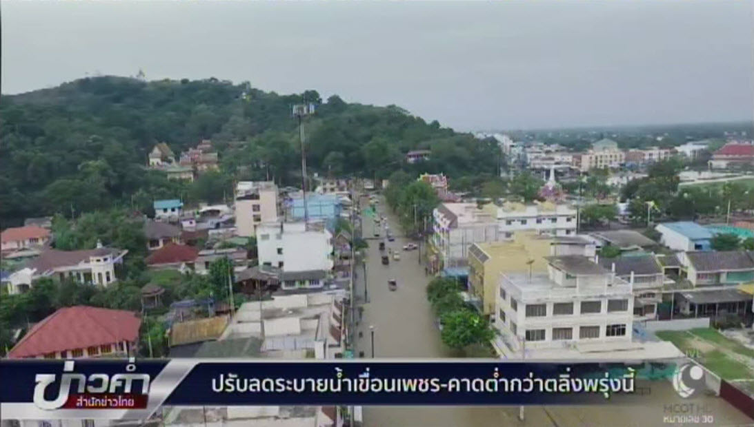 เพชรบุรี 4 พ.ย.-สถานการณ์น้ำท่วมพื้นที่ จ.เพชรบุรี ยังไม่คลี่คลาย หลายพื้นที่ยังมีน้ำท่วมขัง ด้านกรมชลประทานออกประกาศฉบับ 19 ปรับลดการระบายจากน้ำเขื่อนเพชร และคาดว่าระดับน้ำในแม่น้ำเพชรบุรีจะต่ำกว่าตลิ่งวันพรุ่งนี้