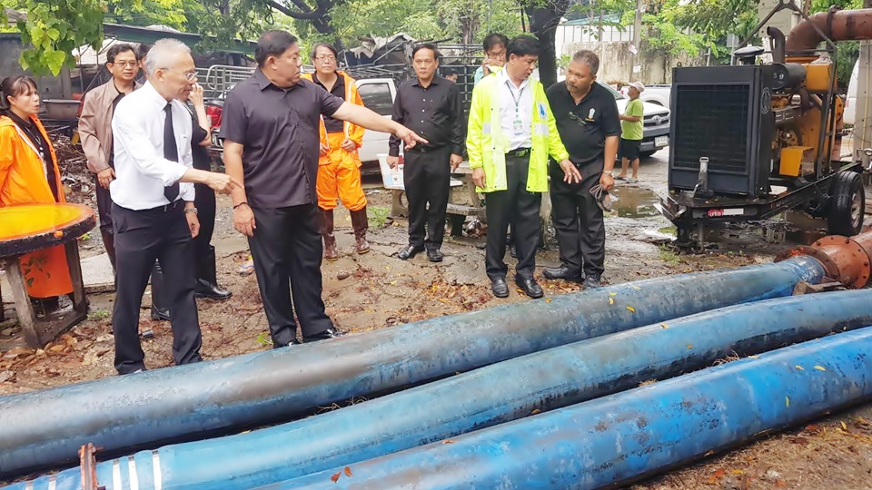 สำนักข่าวไทย 17 พ.ค.-ผู้ว่าฯ กทม.ลงพื้นที่ตรวจจุดอ่อนน้ำท่วมขังซ้ำซากฝั่งธนฯ พบไร้ปัญหาเร่งระบายน้ำได้ภายใน 1ชั่วโมง วอนประชาชนอย่าทิ้งขยะลงคลอง