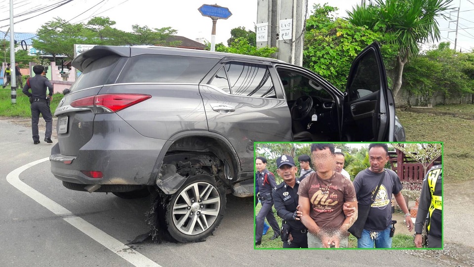 ประจวบคีรีขันธ์ 17 พ.ค.- หนุ่มลูกจ้างบริษัททัวร์เสพยาบ้าปีนเข้าบ้านชาวต่างชาติขโมยรถจากภูเก็ต ซิ่งหนีด่านชุมพรเลียนแบบหนังดัง ตำรวจวิทยุสกัดจับกันวุ่น ยิงยางแตกยังไม่ยอมหยุด สุดท้ายจนมุมที่บางสะพาน ค้นประวัติพบหลายคดีติดตัว