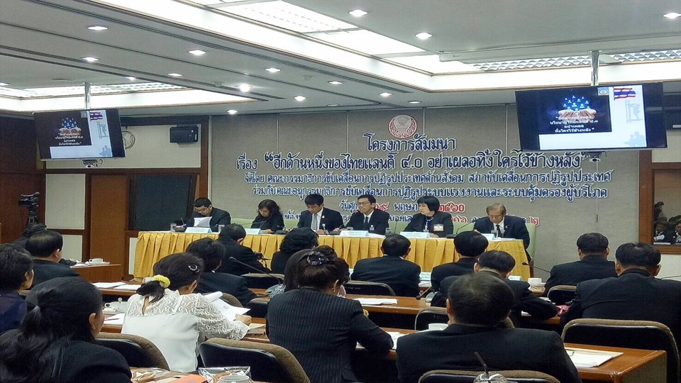 นายกอบศักดิ์ ภูตระกูล ผู้ช่วยรัฐมนตรีประจำสำนักนายกรัฐมนตรี กล่าวปาฐกถาระหว่างการสัมมนา “อีกด้านหนึ่งของไทยแลนด์ 4.0 อย่าเผลอทิ้งใครไว้ข้างหลัง” ที่กรรมาธิการขับเคลื่อนการปฏิรูปประเทศด้านสังคม ร่วมกับอนุกรรมาธิการขับเคลื่อนการปฏิรูประบบแรงงานและระบบคุ้มครองผู้บริโภค ว่า ไทยแลนด์ 4.0 เป็นเรื่องใกล้ตัวที่สามารถทำหรือปรับปรุงให้เกิดการเปลี่ยนแปลงได้ แต่นวัตกรรมไม่จำเป็นต้องล้ำยุค