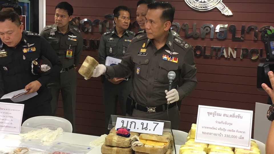 กทม.19 พ.ค.- ตำรวจ สน.ตลิ่งชัน โชว์ผลงานจับแก๊งส่งยาเสพติดจากภาคเหนือ สู่ภาคใต้และส่งต่อประเทศที่ 3 ย่านอาเซียน ยึดยาบ้า 330,000 เม็ดและทรัพย์สินอื่นหลายรายการ