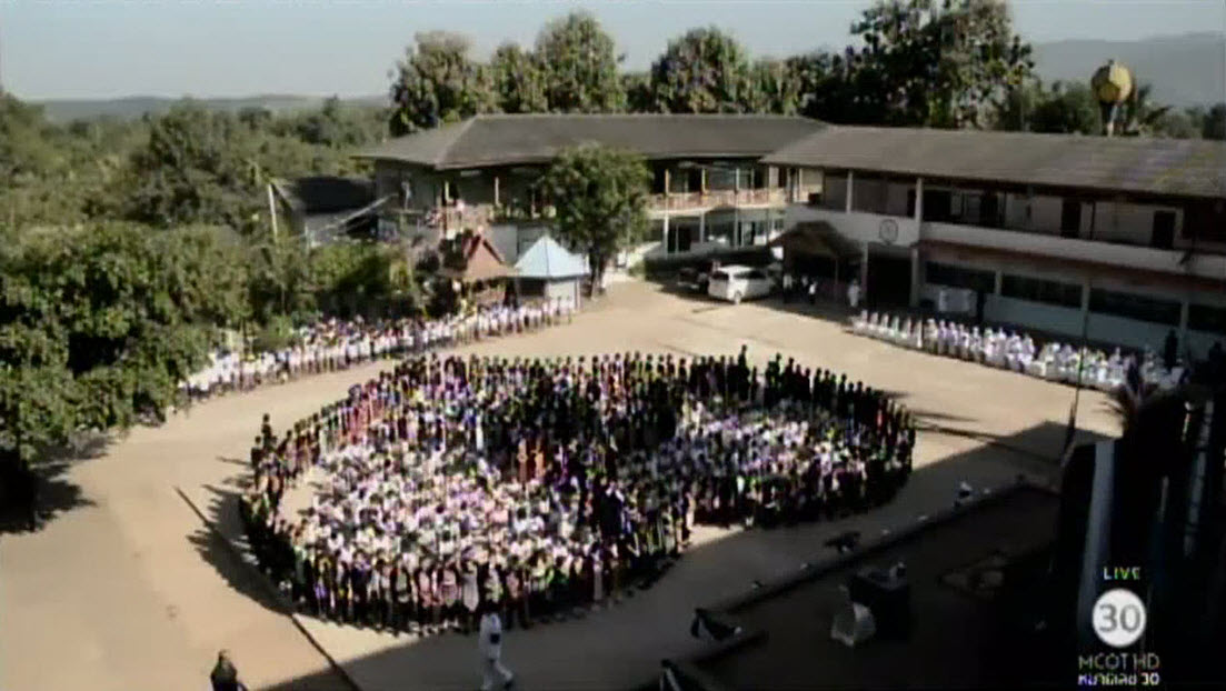 ภูมิภาค 4 พ.ย.-คณะครู นักเรียน และราษฎรชาวเขาเผ่าม้ง โรงเรียนบ้านเข็กน้อย อ.เขาค้อ จ.เพชรบูรณ์ กว่า 1,200 คน ร่วมกันแปรอักษรแสดงความอาลัยแด่พระบาทสมเด็จพระปรมินทรมหาภูมิพลอดุลยเดช