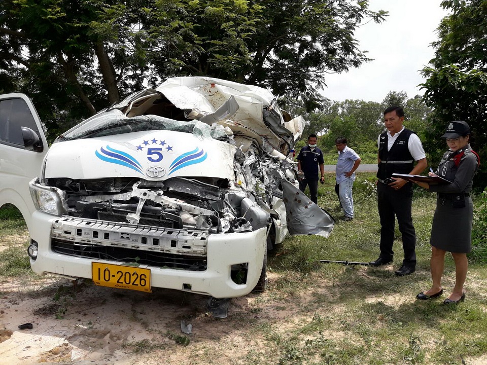 สอบสวนชายคนขับ อายุ 56 ปี ให้การว่า ขณะรับผู้โดยสารมาจากจังหวัดยโสธรเมื่อมาถึงบริเวณดังกล่าวได้ยินเสียงยางระเบิด จึงตกใจรีบหยุดรถกะทันหัน ทำให้แฉลบเข้าไหลทางและชนต้นไม้ เจ้าหน้าที่จึงแจ้งข้อหาขับรถโดยประมาทจนทำให้มีผู้ได้รับบาดเจ็บ.-สำนักข่าวไทย