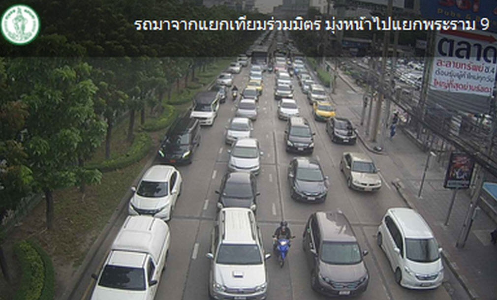 การจราจรถนนรัชดาภิเษก ขาเข้า แยกเทียมร่วมมิตร เข้าแยกพระราม9 – ถนนอโศกมนตรี รถมาก ท้ายสะสมหน้ากรมส่งเสริมการส่งออก
