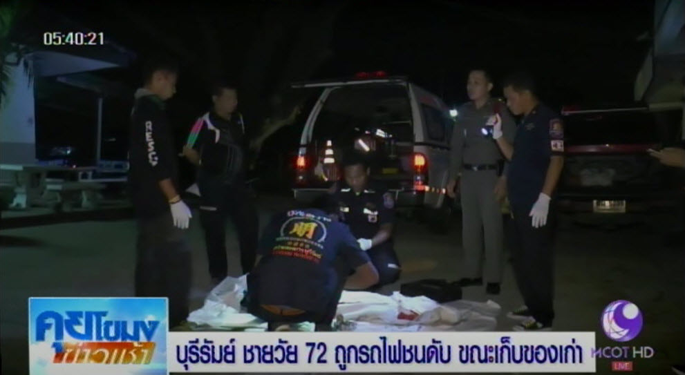 บุรีรัมย์ 24 พ.ค.-ชายวัย 72 ถูกรถไฟพุ่งชนร่างกระเด็นไปตกทุ่งนาเสียชีวิต ขณะเดินเก็บของเก่าข้างรางรถไฟ ท่ามกลางความมืดและสายฝน