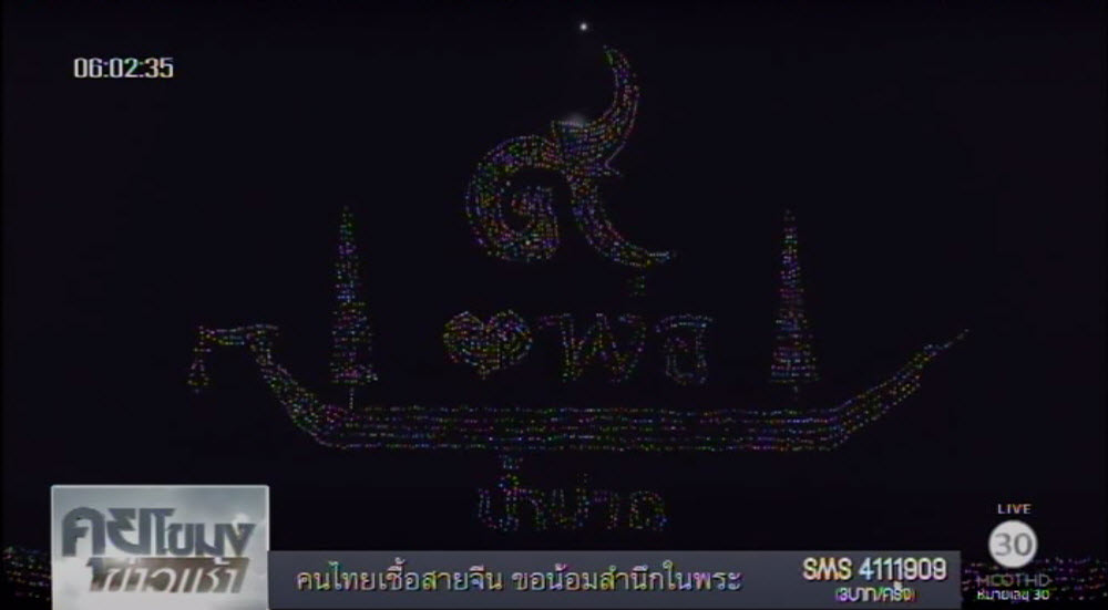 จากนั้นได้แปรอักษรเป็นรูปเรือสุพรรณหงส์ มีเลข ๙ อยู่ด้านบน ถัดลงมาเป็นรูปหัวใจ และคำว่า “พ่อ” มีคำว่า “น้ำปาด” อยู่ด้านล่าง เพื่อแสดงถึงความสำนึกในพระมหากรุณาธิคุณที่พระองค์เคยเสด็จฯ มา จ.อุตรดิตถ์ ถึง 4 ครั้ง และเคยเสด็จฯ มาพระราชทานความช่วยเหลือผู้ประสบอุทกภัยใน ต.ท่าแฝก ซึ่งปัจจุบันอยู่ใน อ.น้ำปาด ทำให้ทั่วบริเวณสว่างไสวสวยงามไปด้วยแสงจากเปลวเทียนแห่งความอาลัยรัก ที่ทุกคนมีต่อพระบาทสมเด็จพระปรมินทรมหาภูมิพลอดุลยเดช. – สำนักข่าวไทย