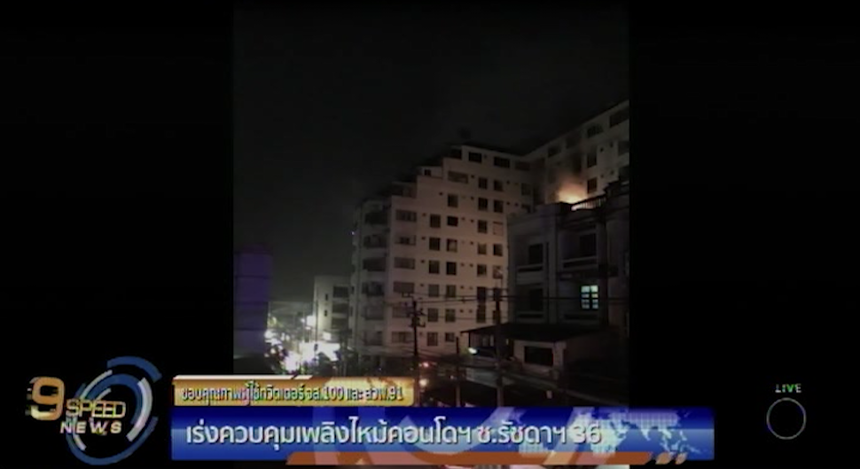 กรุงเทพฯ 3 พ.ย.-เกิดเหตุไฟไหม้คอนโดมิเนียมภายในซอยรัชดาภิเษก 36 เจ้าหน้าที่เร่งคุมเพลิง