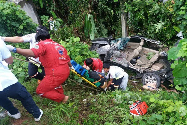 เบื้องต้นทราบว่ารถคันดังกล่าวกำลังจะไปสนามบินและคงขับมาด้วยความเร็ว ประกอบกับมีฝนโปรยปรายลงมา ทำให้ถนนลื่นและรถเสียหลักทางโค้งชนเข้ากับตอม่อเสาไฟฟ้าอย่างแรง ก่อนพลิกตกข้างทาง.-สำนักข่าวไทย