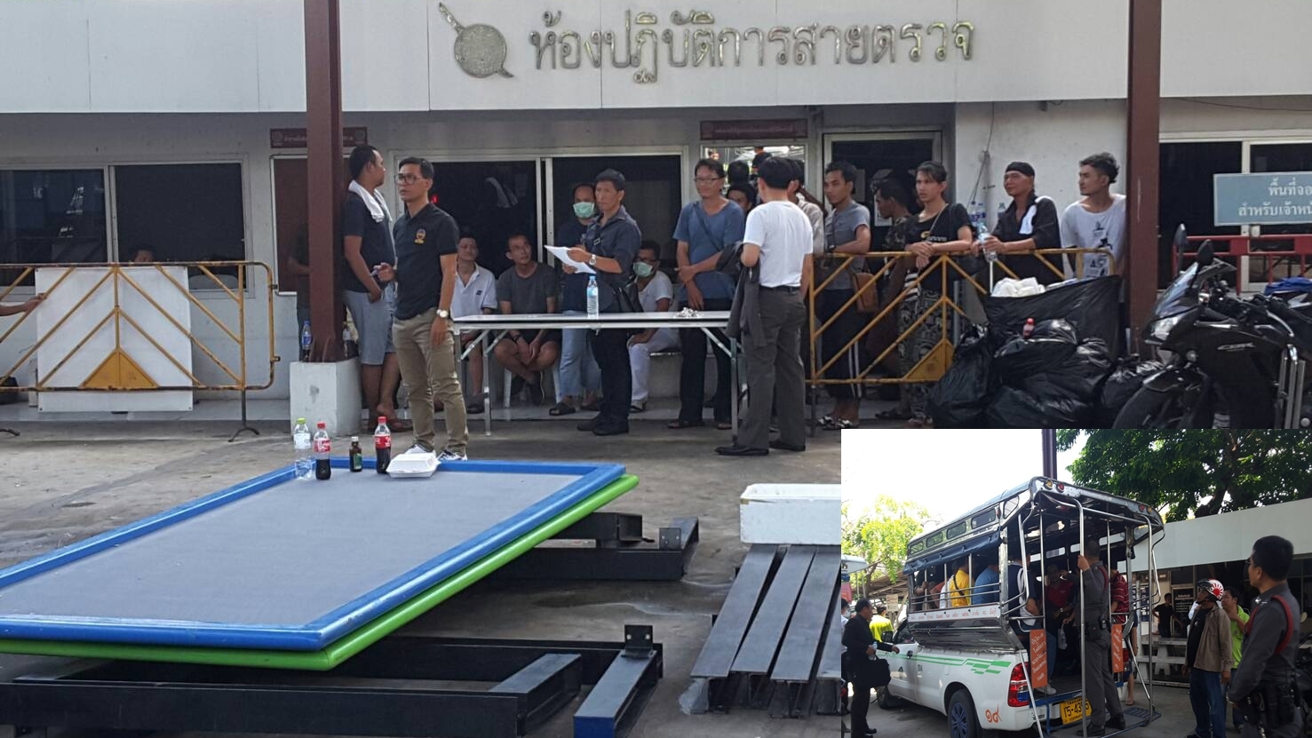 กทม.25 พ.ค.- ตำรวจใช้รถ 8 คันขนนักพนันทั้งชาวไทยและต่างชาติรวม 97 คน ส่งฟ้องศาลแขวงพระนครเหนือ หลังถูกทหารนำกำลังเข้าจับกุมคาบ่อนซอยลาดพร้าว 119