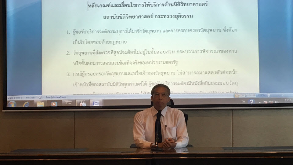 ผอ.สถาบันนิติวิทยาศาสตร์ กล่าวว่า ที่ผ่านมาการให้บริการของภาครัฐ มีให้บริการเฉพาะฝ่ายนิติเวช โรงพยาบาลตำรวจ และโรงพยาบาลเอกชนบางแห่ง และค่าบริการค่อนข้างมีราคาแพง ทางสถาบันฯมีผู้เชี่ยวชาญเฉพาะด้าน จึงเห็นถึงความจำเป็นในเรื่องนี้ เพราะผู้เสียหาย จากคดีอาญา คดีแพ่ง คดีฉ้อโกง โดยเฉพาะคดีเกี่ยวกับมรดก การทำพินัยกรรม พบว่ามีการปลอมเอกสารและลายเซ็นแต่ละปีจำนวนมาก ซึ่งการตรวจพิสูจน์ทราบเกี่ยวกับลายเซ็นต์นั้นจะหาผู้เชี่ยวชาญด้านนี้ได้น้อยมาก สถาบันสามารถตรวจว่าบุคคลเดียวกันเป็นคนเขียนหรือไม่ , ตรวจรอยลบแก้ไข,หาข้อความเดิมบนเอกสาร,ตรวจการปลอมแปลงเอกสาร เช่น ธนบัตร หนังสือเดินทาง รอยประทับตรา เดิมการตรวจลักษณะนี้จะต้องรอให้ศาลมีคำสั่งเท่านั้น และเอกชนไม่สามารถตรวจให้ได้