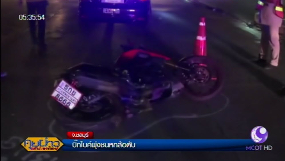 ใกล้กันมีรถบรรทุก 6 ล้อ ฮีโน่ สีขาว ทะเบียนป้ายเหลือง 79-3362 กทม. จอดขวางทางอยู่ ทราบชื่อนายประจบ เอี่ยมภู่ ยืนรอให้การกับตำรวจ ระบุว่า มารับสินค้าในบริษัท สยามโตโยต้า กำลังจะไปส่งของ เห็นรถจักรยานยนต์คันดังกล่าววิ่งมาด้วยความเร็ว และเบรกเสียหลักล้มไถลมาชนกับล้อหน้ารถ ทำให้ได้รับบาดเจ็บและเสียชีวิต ซึ่งตำรวจจะสอบสวนหาสาเหตุที่แท้จริงต่อไป. – สำนักข่าวไทย