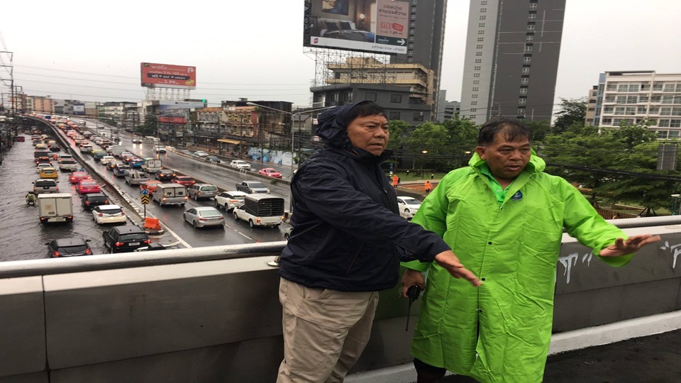 ตลาดพงษ์เพชร 27 พ.ค.พล.ต.อ.อัศวิน ขวัญเมือง ผู้ว่าราชการกรุงเทพมหานคร พร้อมด้วยนายสมพงษ์ เวียงแก้ว ผู้อำนวยการสำนักการระบายน้ำ กทม. ลงพื้นที่ติดตามสถานการณ์น้ำเร่งการระบาย บริเวณตลาดพงษ์เพชร ถนนงามวงศ์วาน เขตหลักสี่ หลังจากที่มีฝนตกตั้งแต่เวลา 13.45 น. ความสูงประมาณ 20-25 ซม. ทั้ง 2 เลนของถนนงามวงศ์วาน ระยะทางประมาณ 300 เมตร โดยเวลา 16.10 น. น้ำเร่งระบายในบริเวณดังกล่าวได้แห้งเป็นปกติแล้ว // ซึ่งการระบายน้ำภาพรวมขณะนี้ยังสามารถรับมือไหว โดยได้ติดตั้งเครื่องระบายน้ำหัว-ท้าย เพื่อดึงน้ำลงคลอง และเพิ่มเครื่องผลักดันน้ำลงคลองเปรมประชากรอีก14 ตัว คาดว่าหากปริมาณฝนในค่ำคืนนี้ตกมาไม่มาก จุดนี้ไม่น่าเป็นห่วง.-สำนักข่าวไทย
