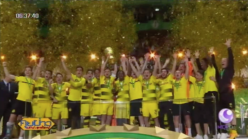 ศึกเดเอฟเบ โพคาล เยอรมนี นัดชิงชนะเลิศ เสือเหลือง โบรุสเซีย ดอร์ทมุนด์ พบกับ ไอร์ทรัค แฟรงค์เฟิร์ต นาทีที่ 8 ลูคัส พิซเชค เปิดให้ อุสมาน เดมเบเล สปีดไปรับบอลก่อนล็อกเข้าซ้ายซัดเข้าเสาไกลให้ ดอร์ทมุนด์ ขึ้นนำ 1-0 นาทีที่ 29 กองหลังดอร์ทมุนด์ เช็กล้ำหน้าพลาด มิยัต กาซิโนวิช แทงบอลให้ อันเต เรบิช หลุดเข้าไปยิงด้วยขวาผ่าน โรมัน เบอร์กี นายทวารดอร์ทมุนด์เข้าไปตีเสมอ 1-1 จบครึ่งแรกเสมอกันด้วยสกอร์นี้