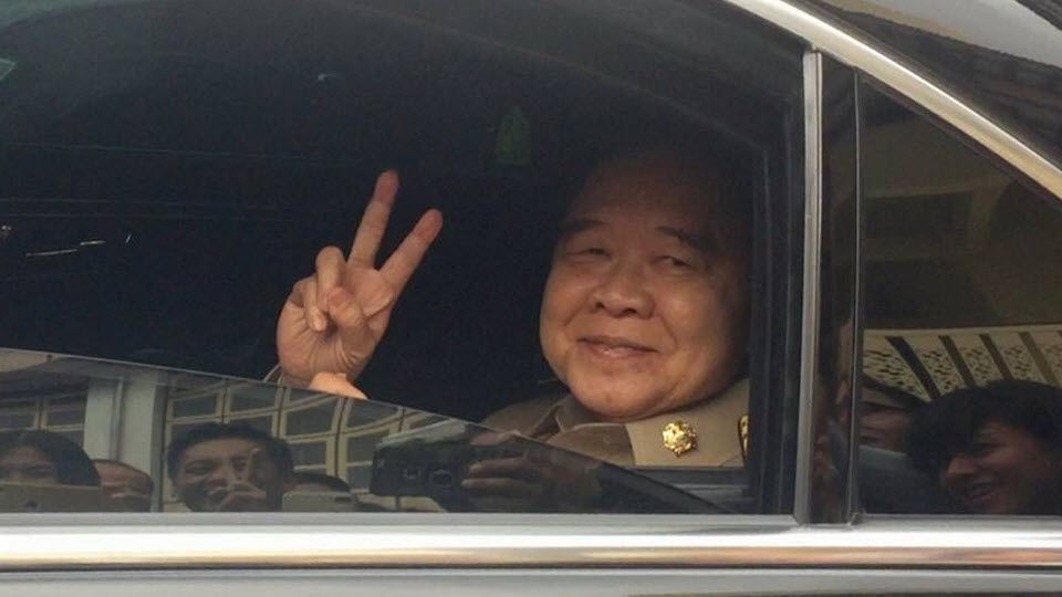 ผู้สื่อข่าวรายงานว่า ก่อนเดินทางออกจากกระทรวงกลาโหม พล.อ.ประวิตร ได้ชู 2 นิ้วพร้อมยิ้มให้สื่อมวลชนด้วย .- สำนักข่าวไทย