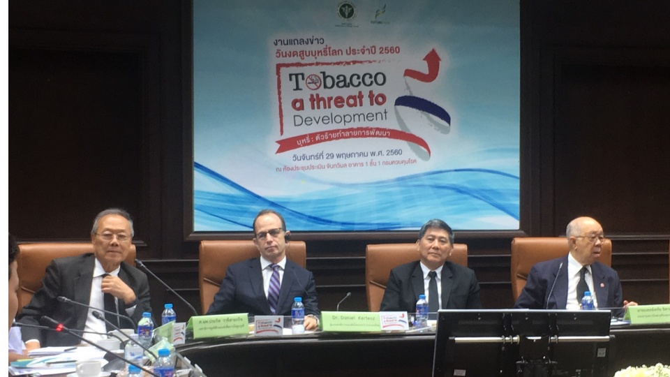 นพ.เจษฎา โขคดำรงสุข อธิบดีกรมควบคุมโรค พร้อมด้วยนพ.แดเนียล เคอร์เทสย์ ผู้แทนองค์การอนามัยโลกประจำประเทศไทย กล่าวว่า เนื่องจากวันที่ 31 พฤษภาคม ของทุกปีตรงกับวันงดสูบบุหรี่โลก โดยปีนี้องค์การอนามัยโลก กำหนด การรณรงค์ ” Tobacco – a threat to development ” หรือ บุหรี่ : ตัวร้ายทำลายการพัฒนา