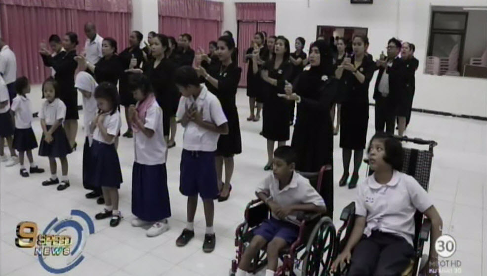 ภูมิภาค 3 พ.ย.-นักเรียนผู้พิการร่วมร้องเพลงสรรเสริญพระบารมี แสดงความอาลัยพระบาทสมเด็จพระปรมินทรมหาภูมิพลอดุลยเดช