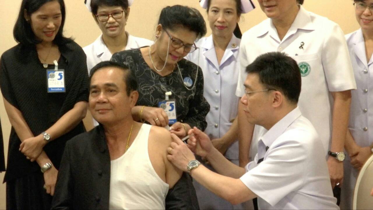 ขณะที่กระทรวงสาธารณสุข ได้นำแพทย์พยาบาลมาบริการฉีดวัคซีนป้องกันโรคไข้หวัดใหญ่3สายพันธุ์ ให้กับนายกรัฐมนตรีและคณะรัฐมนตรี โดยโรคไข้หวัดใหญ่จะพบมากในช่วงฤดูฝนและฤดูหนาวมักจะเกิดในผู้สูงอายุ /เด็กและคนที่มีโรคประจำตัวถือว่าเป็นกลุ่มเสี่ยงมักจะมีอาการรุนแรงเนื่องจากมีภูมิต้านทานโรคต่ำจนทำให้เกิดภาวะแทรกซ้อนได้ อาจทำให้เสียชีวิตซึ่งการฉีดวัคซีนเป็นอีกมาตรการในการป้องกันโรคไข้หวัดใหญ่ โดยจะฉีดให้กับประชาชนทั่วประเทศฟรีที่สถานพยาบาลใกล้บ้านระหว่างวันที่ 1 มิถุนายน -31 สิงหาคมนี้ โดยนายกรัฐมนตรี กล่าวว่าหมอที่ฉีดยาว่ามือเบามาก จะฉีดอีกเข็มก็ได้นะ และยังได้ภาพกับพยาบาล พร้อมกล่าวว่า ยิ้มกันขนาดนี้แสดงว่าได้บรรจุกันหมดแล้ว.-สำนักข่าวไทย