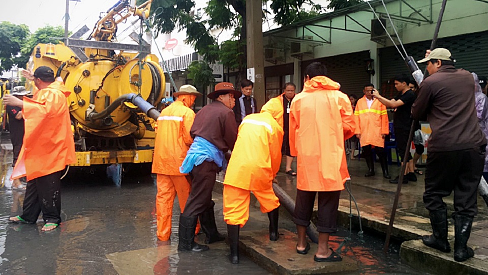 นายจักกพันธุ์ ผิวงาม รองผู้ว่าราชการกรุงเทพมหานคร (กทม.) ลงพื้นที่บริเวณซอยงามวงศ์วาน 47 แยก 40 ติดตามการทำงานของเจ้าหน้าที่สำนักการระบายน้ำ ที่กำลังดูดเลน ออกจากท่อระบายน้ำ เตรียมวางท่อใหม่ เพื่อติดตั้งเครื่องสูบน้ำเพิ่มอีก 2จุดในพื้นที่ชินเขต เขตหลักสี่