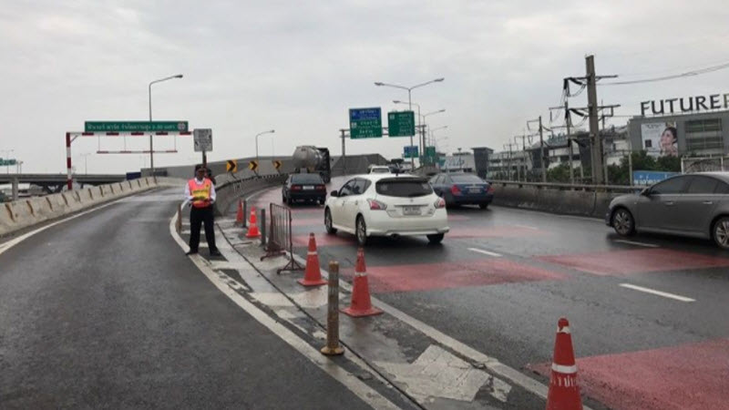 กรมทางหลวง โดยสำนักงานทางหลวงที่ 13 (กรุงเทพ) ได้ดำเนินการเข้าพื้นที่และตรวจสอบโครงสร้างสะพานเข้าห้างฟิวเจอร์พาร์ค รังสิต พบว่า บริเวณจุดเชื่อมต่อ (Joint) ของสะพานมีการเคลื่อนตัวออก จึงมีความจำเป็นต้องปิดการจราจรสะพานดังกล่าว เพื่อความปลอดภัยของประชาชนผู้ใช้รถใช้ถนน ตั้งแต่วันนี้ (30 พ.ค.60) เวลา 14.30 น. เป็นต้นไป จนกว่าจะดำเนินการเสร็จ