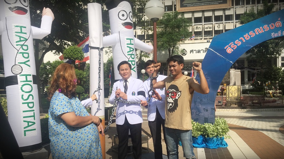นพ.ยุทธนา อุดมพร รองคณบดีฝ่ายการเสริมสร้างสุขภาพ คณะแพทยศาสตร์ศิริราชพยาบาล เปิดกิจกรรม รักใครชวนเลิกบุหรี่ ซึ่งเป็นกิจกรรมรณรงค์เนื่องในวันงดสูบบุหรี่โลก 31 พ.ค. โดยปีนี้องค์การอนามัยโลกให้คำขวัญในการรณรงค์วันงดสูบบุหรี่โลก 2560 คือ บุหรี่ ภัยคุกคามต่อการพัฒนา (Tobacco – a threat to development) มีกิจกรรมประชาสัมพันธ์ให้เห็นพิษภัยของบุหรี่ ปล่อยขบวนรณรงค์ออกเป็น 6 สาย รอบ รพ.และท่าน้ำศิริราช รวมถึงแหล่งชุมชนย่านฝั่งธนบุรี