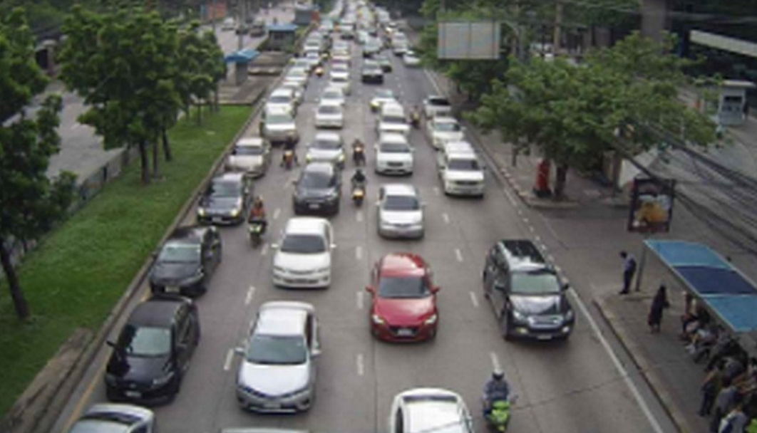 ถนนวิภาวดี-รังสิต ขาเข้า จากแยกสุทธิสาร มุ่งหน้าดินแดง รถมาก ท้ายสะสมใกล้แยกสุทธิสาร
