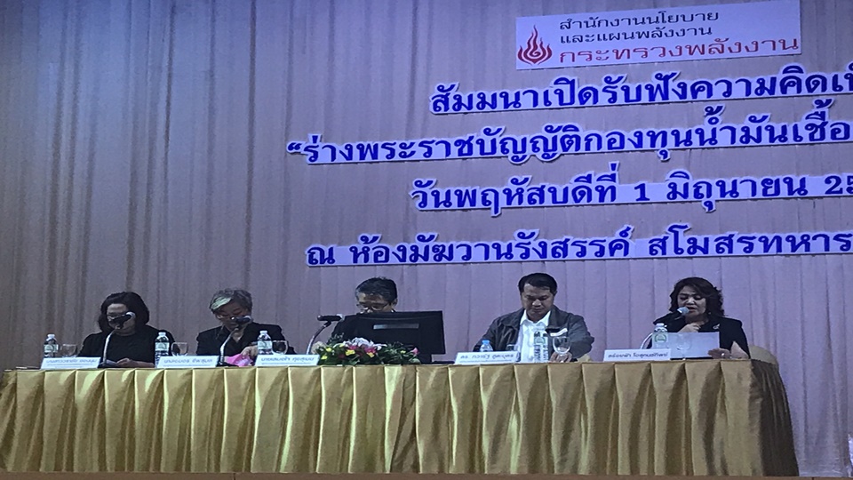 กระทรวงพลังงานเปิดรับฟังความคิดเห็นร่าง พ.ร.บ.กองทุนน้ำมันเชื้อเพลิงผ่านการพิจารณาจากคณะกรรมการกฤษฎีกา ซึ่งเป็นการดำเนินการตามกฎหมายรัฐธรรมนูญ พ.ศ. 2560 ตามมาตรา 77 ที่กำหนดให้ก่อนการออกกฎหมายทุกฉบับต้องจัดให้มีการรับฟังความคิดเห็นและวิเคราะห์ผลกระทบอย่างรอบด้าน โดยเวทีวันนี้มีทั้งผู้เห็นด้วยและไม่เห็นด้วยกับกฎหมายนี้ และผู้เชี่ยวชาญวงการพลังงานชี้ว่าควรตัดวัตถุประสงค์เรื่องการนำเงินกองทุนเพื่อสนับสนุนโครงสร้างพื้นฐานและการลงทุนสำรองน้ำมันทางยุทธศาสตร์ออกไปให้เหลือเพียงเพื่อรักษาเสถียรภาพระดับราคา, สนับสนุนเชื้อเพลิงชีวภาพ, บรรเทาผลกระทบผู้มีรายได้น้อยเท่านั้น เนื่องจากหากไปสนับสนุนการสำรองและโครงสร้างพื้นฐานต้องใช้วงเงินสูงมากเป็นภาระต่อประชาชน ประกอบกับภาวะน้ำมันแนวโน้มล้นความต้องการ ราคาต่ำ/ความจำเป็นสำรองยุทธศาสตร์อาจไม่จำเป็น