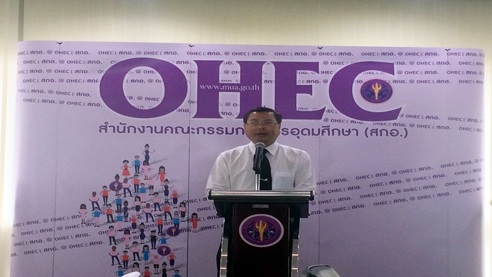 นายสุภัทร จำปาทอง เลขาธิการคณะกรรมการการอุดมศึกษา (เลขาธิการ กกอ.) ร่วมกับผู้บริหารสังกัดสำนักงานคณะกรรมการการอุดมศึกษา(สกอ.) เเถลงข่าวความคืบหน้ากรณีการดำเนินการกับ 10 มหาวิทยาลัยเอกชนที่เปิดสอนหลักสูตรปริญญาเอกและปริญญาโท จำนวน 98 หลักสูตร มีปัญหาการจัดการศึกษาไม่ได้มาตรฐานอุดมศึกษา จำนวนนักศึกษาเกินกว่าเกณฑ์ที่กำหนด ว่า หลังมีผู้เรียกร้องให้สกอ.สอบทานสถาบันอุดมศึกษา จึงได้ดำเนินการตรวจสอบตั้งเเต่ช่วงปลายปีที่ผ่านมา พบว่ามีปัญหาจริงจึงเปิดเผยรายชื่อมหาวิทยาลัยและหลักสูตรที่มีปัญหา เพื่อให้ประชาชนได้รับทราบ
