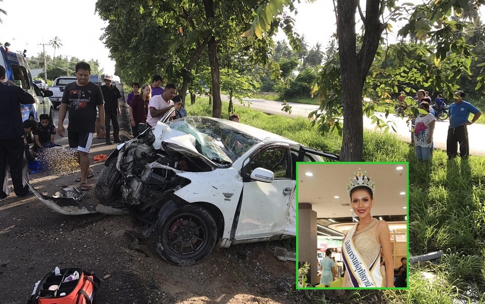 ประจวบคีรีขันธ์ 1 มิ.ย.- เกิดอุบัติเหตุรถชนต้นไม้อย่างแรง ถ.เพชรเกษม-ทับสะแก “น้องเฟี๊ยส” มิสแกรนด์อุทัยธานี 2017 เสียชีวิต ขณะมุ่งหน้าเข้า กทม.ทำกิจกรรมนางงาม หลังได้ตำแหน่งไม่กี่วัน