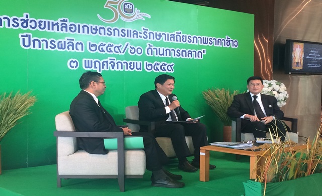 นายสมศักดิ์ กังธีระวัฒน์ รองผู้จัดการ ธ.ก.ส. กล่าวว่า ตั้งแต่ฤดูการผลิตข้าวนาปี ปีการผลิต 2559/2560 รัฐบาลมีมาตรการให้ความช่วยเหลือเกษตรกร ทั้งมาตรการระยะสั้นและระยะยาว ประกอบด้วย 1. การโครงการพักชำระหนี้ต้นเงินและลดดอกเบี้ยเกษตรกร สำหรับผู้มีภาระหนี้เงินกู้ไม่เกิน 500,000 บาท พักชำระต้นเงิน 2 ปี ตั้งแต่ 1 กรกฎาคม 2559 ถึง 30 มิถุนายน 2561 และลดดอกเบี้ยเงินกู้ร้อยละ 3 ต่อปี กลุ่มเป้าหมาย 2 ล้านราย 2.การลดต้นทุนการผลิต จ่ายเงินช่วยเหลือต้นทุนการผลิตไร่ละ 1,000 บาท รายละไม่เกิน 10 ไร่ ช่วยลดต้นทุนการผลิตตันละ 2,500 บาท เริ่มโครงการตั้งแต่วันที่ 1 กรกฎาคม 2559 – 31 ธันวาคม 2559 ยกเว้นภาคใต้ไม่เกินวันที่ 28 กุมภาพันธ์ 2560 มีชาวนาได้รับประโยชน์ 3.7 ล้านราย ณ วันที่ 2 พฤศจิกายน 2559 จ่ายเงินให้เกษตรกรแล้ว 2.8 ล้านราย เป็นเงิน 23,262 ล้านบาท