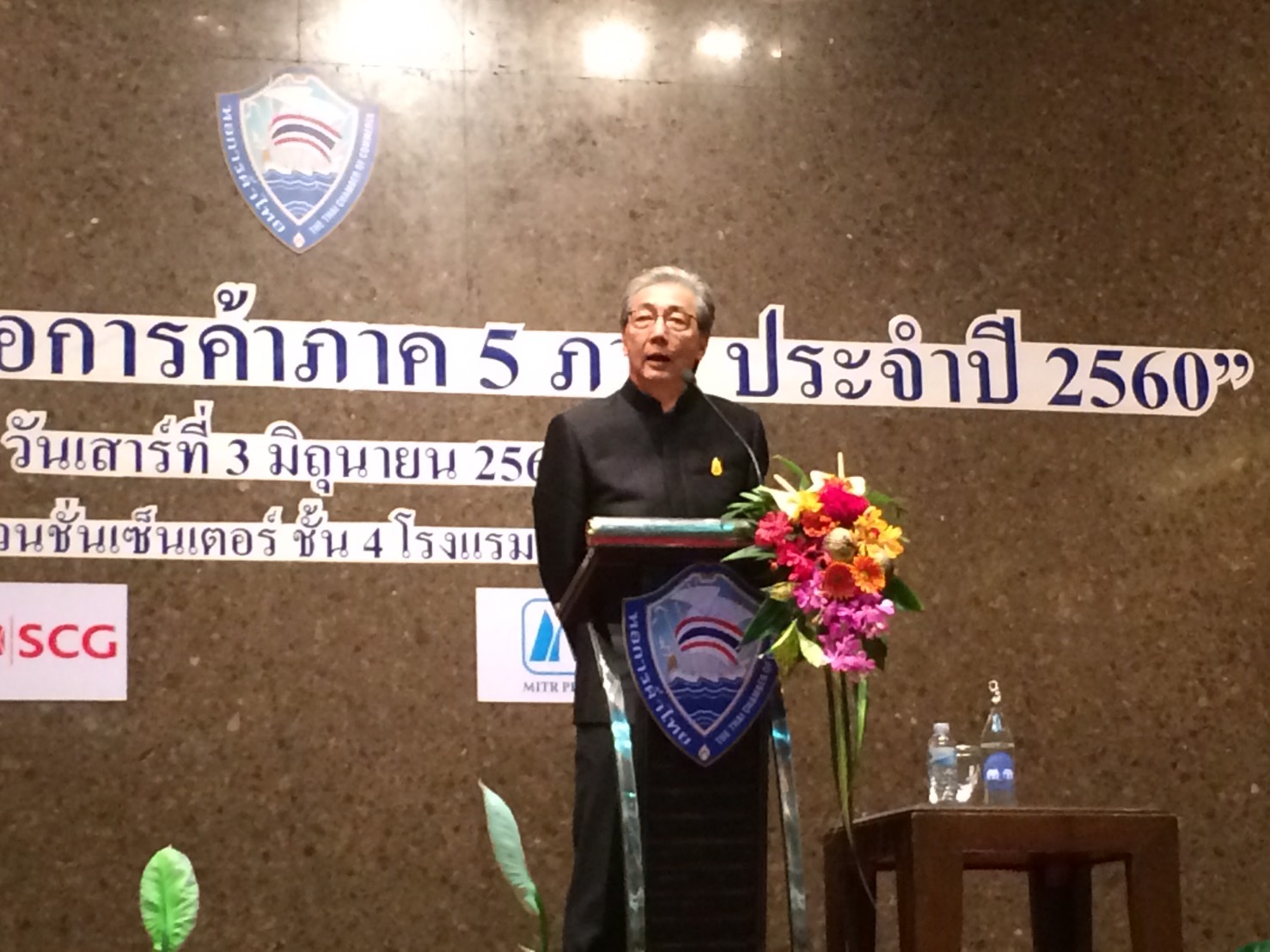 ก้าวต่อไปในการสร้างความเข้มแข็งและยั่งยืนให้กับเศรษฐกิจภายในประเทศ (Local Economy)” ในงานการประชุมหอการค้าภาค 5 ภาค ประจำปี 2560 ว่า ปัจจัยจากต่างประเทศยังเป็นปัจจัยสำคัญที่ส่งผลกระทบต่อการขับเคลื่อนเศรษฐกิจของไทย