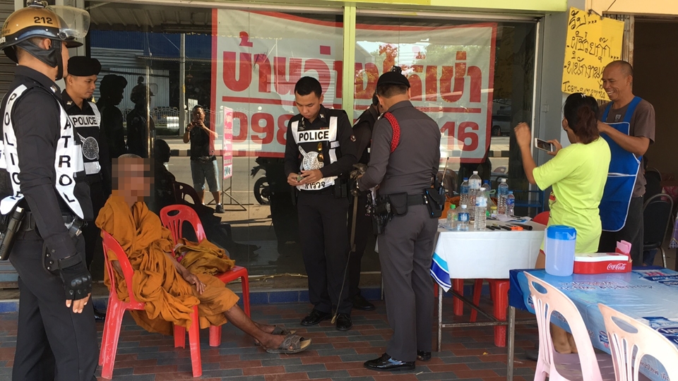 ด้านเจ้าของร้านขายอาหาร บอกว่า ในช่วงเช้า 3-4 วันที่ผ่านมานี้ ตนเห็นพระรูปนี้เดินบิณฑบาตทุกเช้า ตนก็นิมนต์แวะที่ร้านเพื่อฉันภัตตาหารเช้าทุกเช้า แต่มาวันนี้พระขอฉันข้าวเปล่า และเอาบะหมี่กึ่งสำเร็จรูปมาให้พนักงานที่ร้านต้มให้ ตนจึงเข้าไปสอบถามว่าจำวัดที่วัดไหน พระตอบว่าอาศัยอยู่ป่าช้า ตนเห็นว่าพระรูปนี้มีอาการมึนเมาประกอบกับได้กลิ่นสุราคละคลุ้ง จึงแจ้งเจ้าหน้าที่ตำรวจมาตรวจสอบ