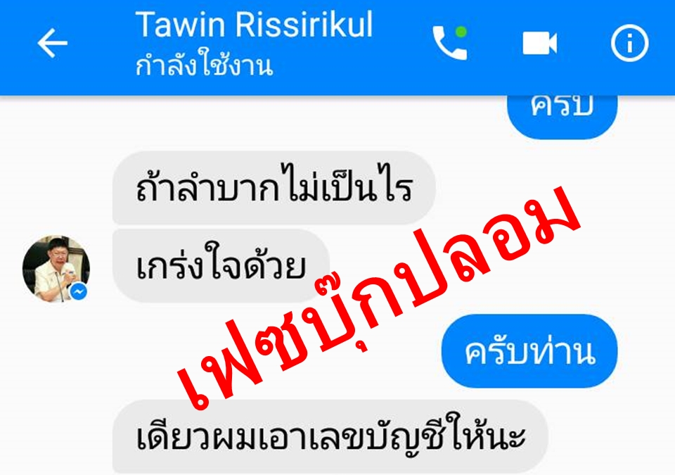ประจวบคีรีขันธ์ 3 มิ.ย.-พ่อเมืองประจวบฯทำหนังสือแจ้งเตือนทุกส่วนราชการ อย่าหลงเชื่อโอนเงินให้ผู้ทำเฟซบุ๊กปลอมในชื่อ Tawin Rissirikul พร้อมระบุแก๊งปลอมเฟซบุ๊กทำเป็นขบวนการใหญ่ในหลายพื้นที่