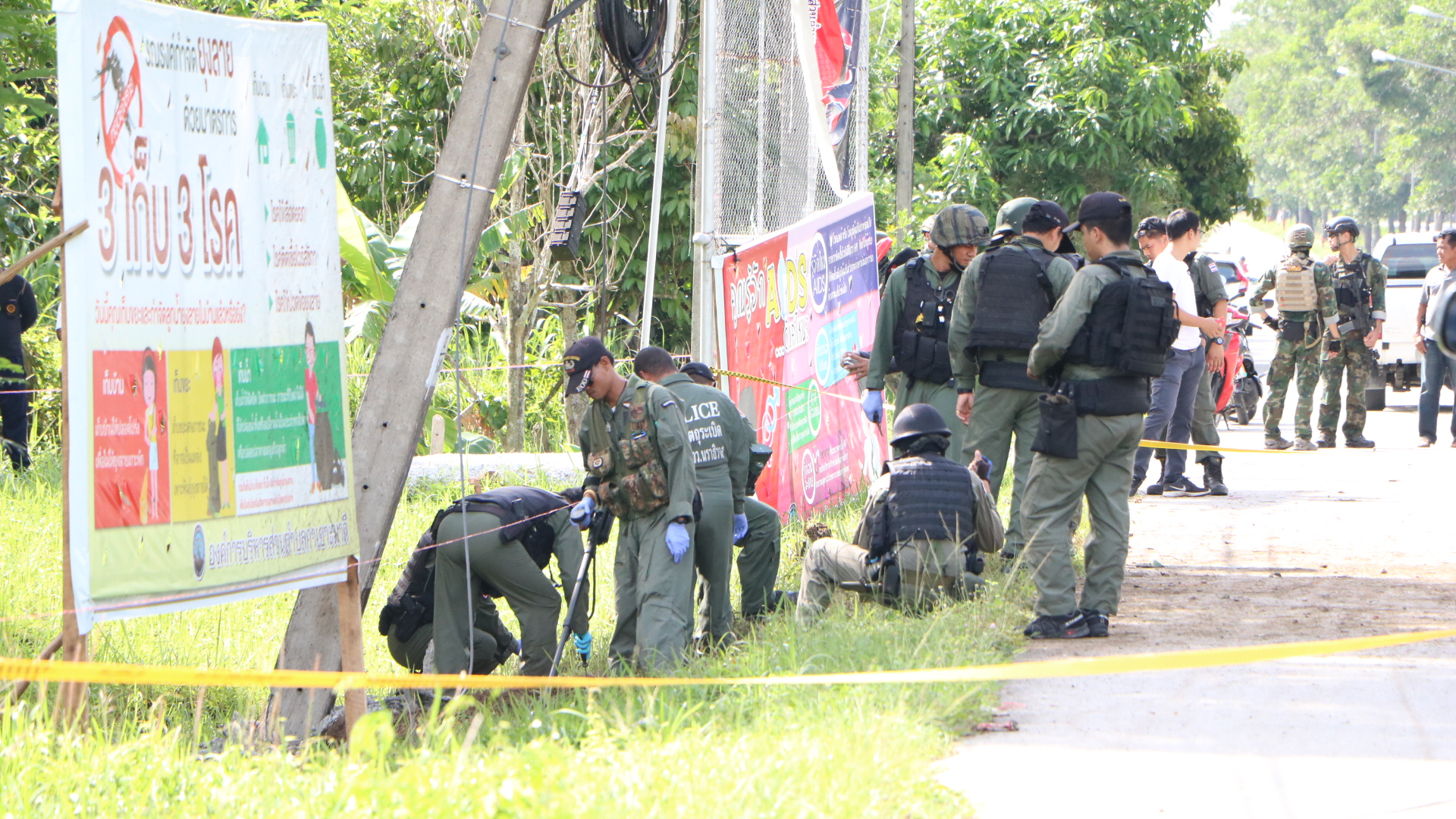 ที่ จ.นราธิวาส ร.ต.ท.พลวัฒน์ เทพษร รอง หน.ชุดเก็บกู้และทำลายวัตถุระเบิด หน่วยปฏิบัติการพิเศษภูธรจังหวัดนราธิวาส และชุดพิสูจน์หลักฐานเข้าตรวจสอบสะพานบ้านกาเด็ง ม.7 ต.ละหาร อ.ยี่งอ ถนนเพชรเกษมสาย 42 พบวัตถุต้องสงสัยใส่ในถุงพลาสติกสีดำใส่ไว้ในตะกร้าของรถจักยานสภาพเก่าจอดพิงกับราวสะพาน และมีสีสเปรย์พ่นเขียนข้อความก่อกวน เจ้าหน้าที่ได้ใช้เครื่องตัดสัญญาณโทรศัพท์มือถือและวิทยุสื่อสารก่อนเข้าตรวจสอบ และใช้เครื่องแรงดันน้ำพลังสูงยิงทำลายพบว่าไม่ใช่ระเบิด ส่วน อ.บาเจาะ เสาไฟฟ้าริมถนนเกษมสาย 42 ขาเข้า อ.บาเจาะ ปากทางเข้าที่ทำการ อบต.กาเยาะมาตี ม.3 ถูกระเบิดจนโค่นเอียงเมื่อคืนที่ผ่านมา เจ้าหน้าที่ได้เก็บชิ้นส่วนระเบิดชนิดแสวงเครื่องไว้เป็นหลักฐาน พร้อมประสานเจ้าหน้าที่การไฟฟ้าส่วนภูมิภาคมาซ่อมแซม.-สำนักข่าวไทย