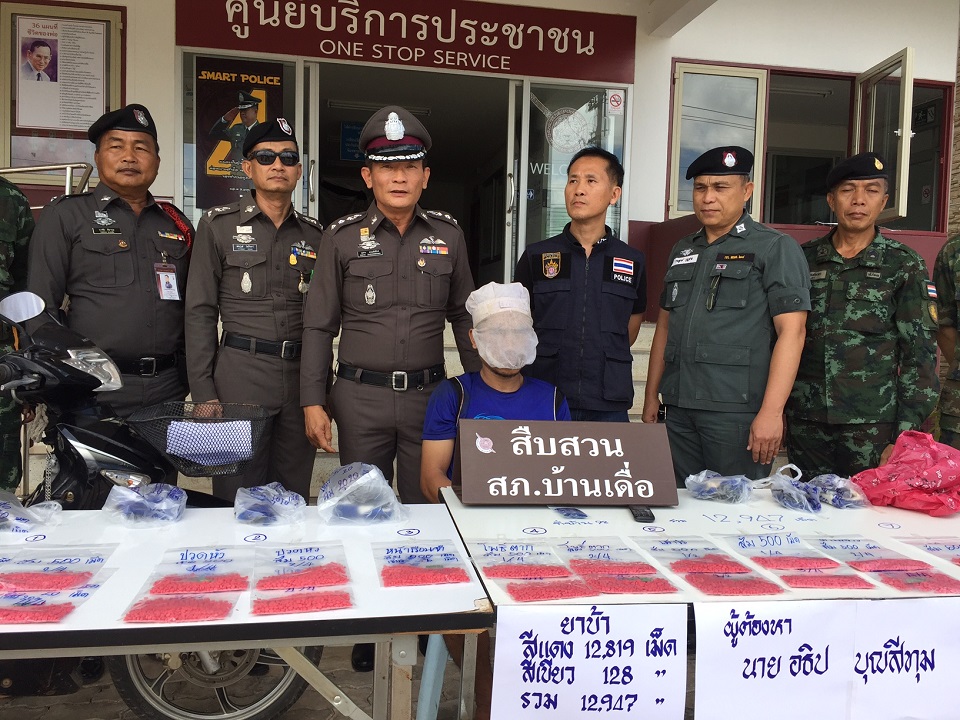 พ.ต.อ.สมชาย สงวนศักดิ์ภักดี ผกก.สภ.บ้านเดื่อ อ.เมือง จ.หนองคาย แถลงมาตรการปราบปรามยาเสพติด โดยสนธิกำลังร่วมกับทหารกองกำลังรักษาความสงบประจำจังหวัดหนองคายและหน่วยเรือรักษาความสงบเรียบร้อยตามลำน้ำโขง (นรข.) หนองคาย ได้จับกุมนายอธิป บุญสีทุม อายุ 28 ปี พร้อมของกลางยาบ้าจำนวน 12,947 เม็ด ขณะขับรถจักรยานยนต์ ทะเบียน ขคธ 815 หนองคาย มายังหน้าปั้มน้ำมันหยอดเหรียญริมถนนหมู่บ้านจอมแจ้ง และยังพยายามขับรถหลบหนีเจ้าหน้าที่ แต่ไปไม่รอดถูกจับได้ เจ้าหน้าที่จึงแจ้งข้อหามียาเสพติดให้โทษประเภท 1 (ยาบ้า) ไว้ในครอบครองเพื่อจำหน่ายโดยผิดกฎหมาย