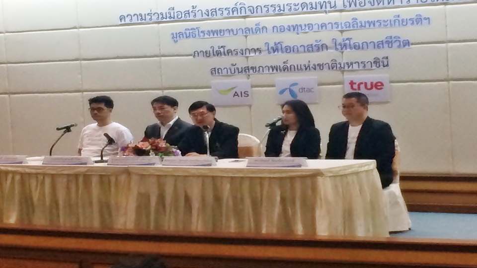กรุงเทพฯ 5 มิ.ย.-บริษัทรายใหญ่ด้านโทรคมนาคม ร่วมสร้างสรรค์กิจกรรมระดมทุนช่วยเหลือเด็กไทยห่างไกลโรคร้ายกับมูลนิธิโรงพยาบาลเด็ก