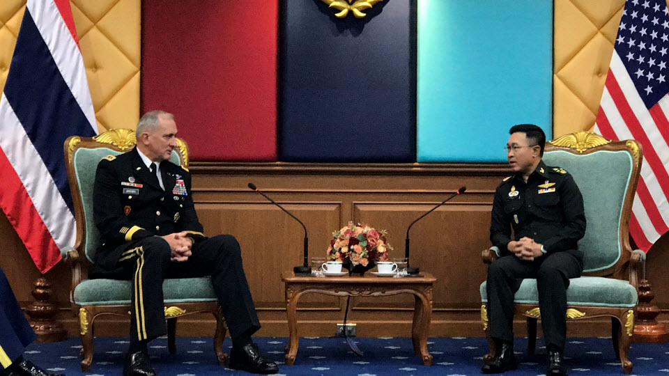 กองทัพไทย 5 มิ.ย.- ผู้บัญชาการทหารสูงสุดต้อนรับผู้บัญชาการกองกำลังทหารบกสหรัฐอเมริกา ภาคพื้นแปซิฟิก ในโอกาสเยือนประเทศไทยอย่างเป็นทาการ ยืนยันความสัมพันธ์ระหว่างกองทัพ 2 ประเทศ