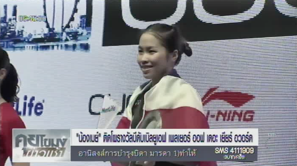 กทม. 3 พ.ย.- น้องเมย์ รัชนก อินทนนท์ นักตบลูกขนไก่สาวไทย ติดโผรางวัล BWF Player of the year Awards 2016