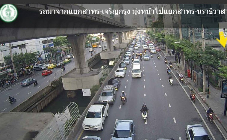 สภาพการจราจร ถนนสาทร แยกสาทร-เจริญกรุง มุ่งหน้าไปแยกสาทร-นราธิวาส รถมาก เคลื่อนตัวได้ช้า