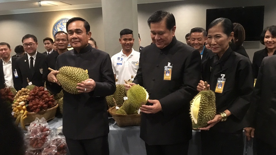 ผู้สื่อข่าวรายงานว่า พล.อ.ประยุทธ์ จันทร์โอชา นายกรัฐมนตรี ก่อนเข้าประชุมคณะรัฐมนตรี ได้เยี่ยมชมงานและชิมทุเรียนพันธุ์กลีบสมุทร ซึ่งเป็นทุเรียนพื้นเมือง มีรสชาติหอมหวานกลิ่นน้ำนม และกล่าวว่า กินทุเรียนทุกวัน โดยเฉพาะพันธุ์ก้านยาว เมื่อผู้สื่อข่าวถามว่า ชอบรับประทานทุเรียนพันธุ์ไหนมากที่สุด นายกรัฐมนตรี ตอบว่า ชอบทุกสายพันธุ์และชอบทุกอย่างที่เป็นผลไม้ไทย พร้อมกันนี้ นายกรัฐมนตรีได้พูดคุยกับชาวสวน จ.จันทบุรี ว่า ปีนี้สินค้าเกษตรราคาดี และอีก 2 ปี น้ำจะดีกว่านี้ และทำให้เกษตรกรมีความสุข ด้านชาวสวนได้บอกกับนายกรัฐมนตรีว่า คนจันทบุรีมีความสุข และวันพรุ่งนี้จะได้พบกับนายกรัฐมนตรีด้วย ซึ่งนายกรัฐมนตรีได้ฝากบอกว่า มีความสุขดีแล้ว ขอให้ไปบอกคนที่ไม่มีความสุขด้วย