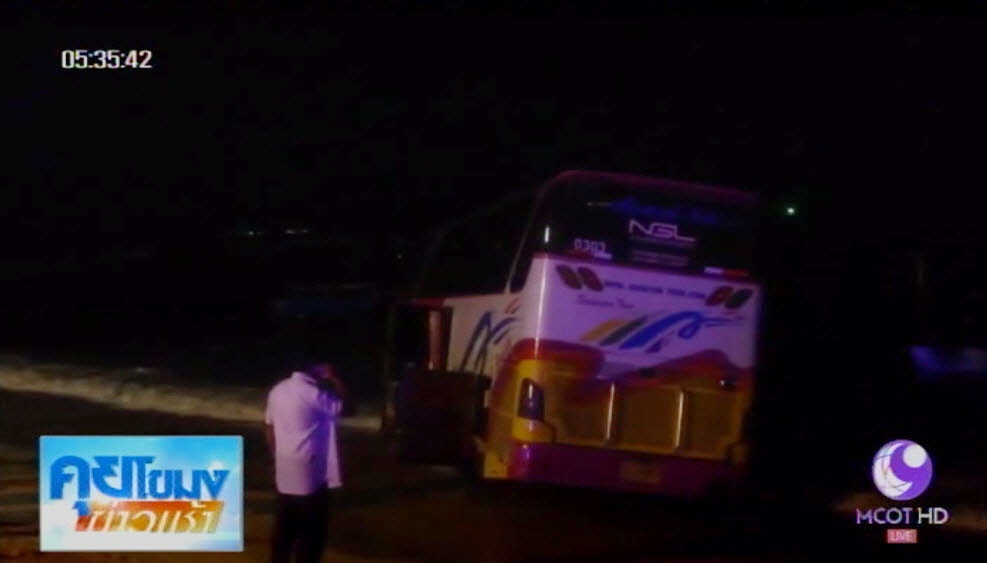 นายทวีโชคชัย แปลงไธสง อายุ 49 ปี คนขับรถทัวร์ บอกว่า ขณะพาลูกทัวร์มากินอาหารทะเลที่ร้านภายในซอยดังกล่าว ซึ่งเป็นทางลาดชัน ได้แตะเบรกเพื่อหยุดรถ แต่เบรกไม่อยู่ จนเฉี่ยวรถกระบะที่จอดข้างทาง จึงประคองพวงมาลัยให้พุ่งเหินลอยจากถนนลงไปที่บริเวณชายหาด แต่รถก็ยังไม่หยุด ไถลลงไปในทะเลดังกล่าว ส่วนสาเหตุคาดว่าน่าจะเกิดจากรถทัวร์เบรกแตก แต่จะเกิดเพราะใช้งานหนักเกินไป หรือตัวรถไม่ได้มาตรฐาน ต้องรอตรวจสอบอีกครั้ง. – สำนักข่าวไทย