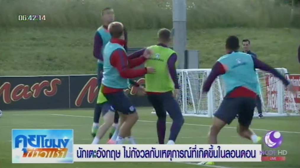 อังกฤษ 7 มิ.ย.- นักเตะอังกฤษ ไม่วิตกกังวลกับเหตุการณ์ที่เกิดขึ้นที่ลอนดอน และเมืองเชสเตอร์ โดยมุ่งมั่นฝึกซ้อมเพื่อเตรียมลุยศึกฟุตบอลโลก รอบคัดเลือก โซนยุโรปกับสกอตแลนด์